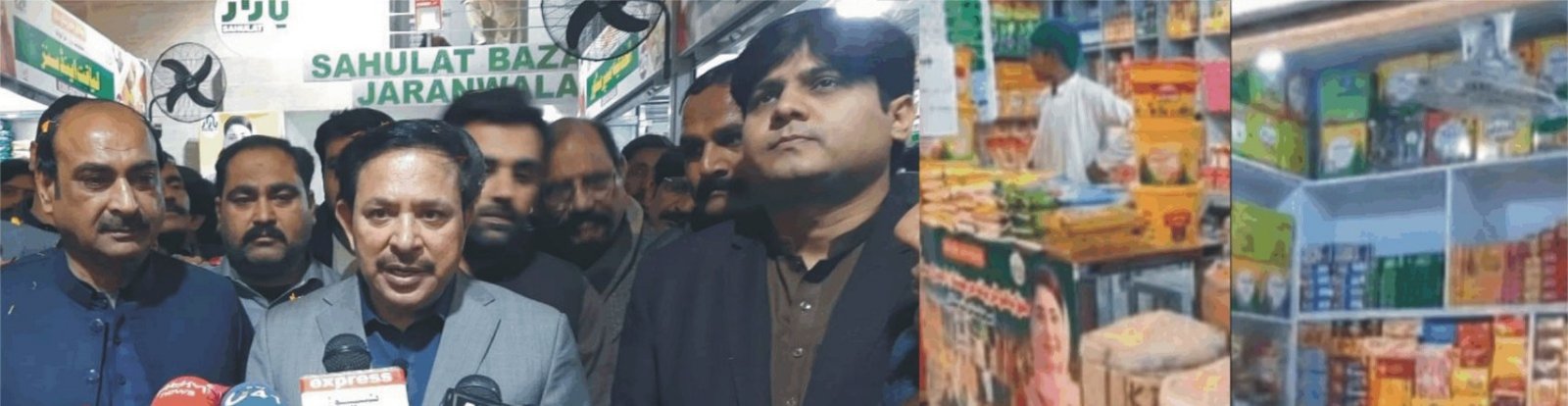 جڑانوالہ:چیئرپرسن سہولت بازارافضل کھوکھر،بلال چودھری،خان بہادرڈوگر افتتاحی تقریب کے بعد میڈیا سے گفتگو کرتے ہوئے